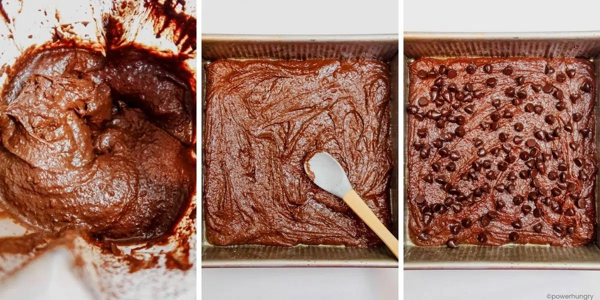 Spread the brownie batter evenly into the prepared baking pan. Sprinkle the top of the batter with the chocolate chips.